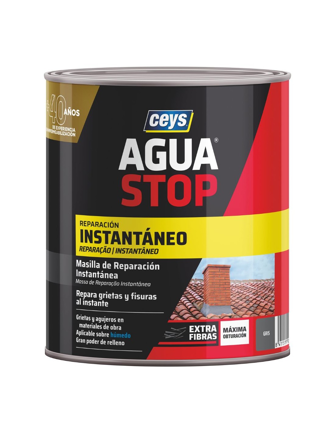 Ceys Aguastop masilla impermeabilizante es un producto en base dispersión concentrada de caucho modificado con resinas especiales, fibra de vidrio y cargas reforzantes. Al secarse, forma una película adherida al soporte, impermeable y con la elasticidad necesaria para seguir las dilataciones de los materiales empleados normalmente en construcción. 1kg Gris